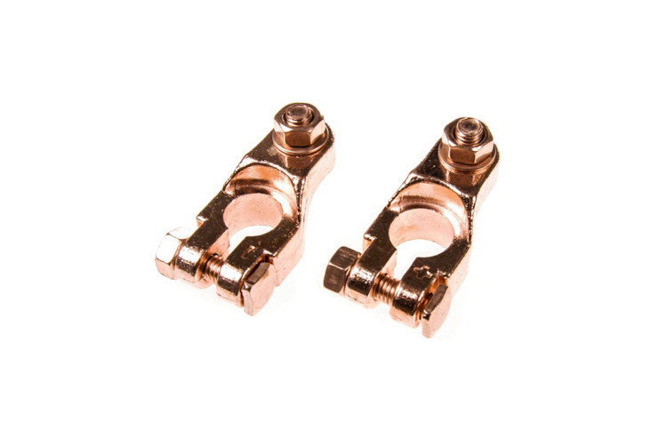 Универсальные автомобильные клеммы VA. Латунь. Предназначены для подключения силовых проводов электропитания к аккумуляторной батарее. Обеспечивают плотное и надежное соединение. Имеют отличную электропроводность.